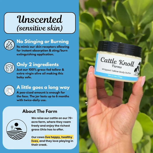 LUHAKA® Natürlicher geschlagener Rindertalg für Haut und Gesicht – Tiefenwirksamer Feuchtigkeitsbalsam aus Talg – Bio-Hautpflege aus Weidehaltung – Pflegt trockene, empfindliche Haut – Nicht komedogen. Zieht schnell ein (4 oz, Lavendel-Vanille)